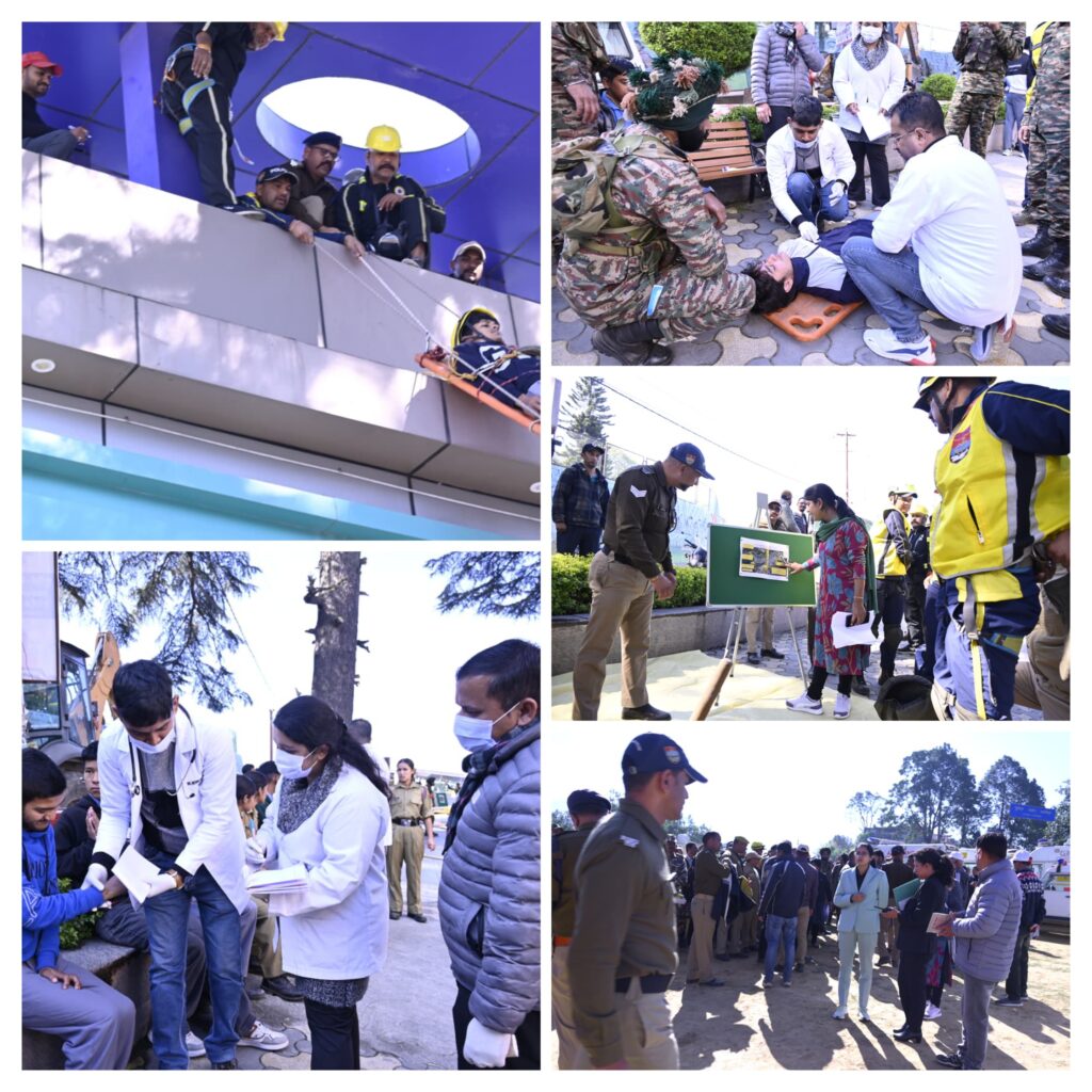 RCM मॉल, विशाल मेगा मार्ट, पिटकुल पावर हाउस पांडेखोला, जिला अस्पताल तथा आंगनबाड़ी केंद्र, हुक्का क्लब शामिल थे। इन सभी स्थलों पर आपदा के वास्तविक परिदृश्य का अनुकरण करते हुए प्रभावितों को सुरक्षित निकालने, प्राथमिक उपचार उपलब्ध कराने, भीड़ प्रबंधन करने तथा त्वरित राहत कार्यों का मूल्यांकन किया गया। फायर सर्विस और मेडिकल टीमों ने तत्काल प्रतिक्रिया, घायल व्यक्तियों की प्राथमिक चिकित्सा, संदिग्ध क्षेत्रों का निरीक्षण तथा सुरक्षित निकासी की प्रक्रिया का सफल प्रदर्शन किया। मॉक ड्रिल के सुचारू संचालन के लिए स्टेजिंग एरिया पुलिस लाइन में स्थापित किया गया था, जहां से उपजिलाधिकारी सदर संजय कुमार के निर्देशन में सभी टीमों को आवश्यक उपकरण, वाहनों तथा रेस्क्यू दलों की तैनाती की गई। रेस्क्यू ऑपरेशन की संपूर्ण मॉनिटरिंग कंट्रोल रूम के माध्यम से की गई। मुख्य विकास अधिकारी रामजी शरण शर्मा ने बताया कि इस प्रकार की मॉक ड्रिल से न केवल आपदा प्रबंधन तंत्र सक्रिय और सजग रहता है, बल्कि संबंधित विभागों के बीच आपसी समन्वय भी मजबूत होता है। साथ ही आमजन में भी आपातकालीन स्थिति में कैसे प्रतिक्रिया करनी है, इसकी जागरूकता बढ़ती है। उन्हेंने कहा कि भविष्य में भी समय-समय पर ऐसे अभ्यास कराकर जिले को आपदा प्रबंधन की दृष्टि से और अधिक सक्षम बनाया जाएगा। जिन सभी पांचों स्थलों पर भूकंप के प्रभाव की काल्पनिक स्थिति बनाई गई उसमें *रघुनाथ सिटी मॉल* में 10:01 मिनट पर भूकंप के झटके महसूस किए गए। इसमें कुछ लोग घायल तथा कुछ लोगों की मृत्यु की काल्पनिक घटना तैयार की गई थी। इस स्थल के इंसीडेंट कमांडर तहसीलदार रानीखेत दीपिका आर्य बनाई गई थी। विशाल मेगा मार्ट में भूकंप के झटकों से कुछ लोगों के फंसे होने की काल्पनिक सूचना प्राप्त हुई। यहां के इंसीडेंट कमांडर तहसीलदार अल्मोड़ा ज्योति धापवाल रहीं।