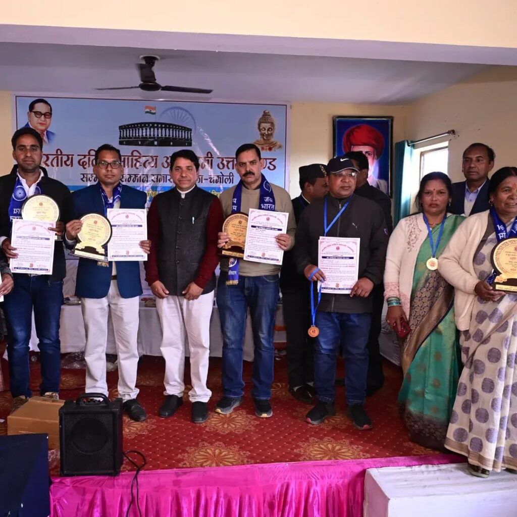 गोपेश्वर चमोली भारतीय दलित साहित्य अकादमी उत्तराखंड का एकदिवसीय सम्मेलन संगोष्ठी अम्बेडकर भवन गोपेश्वर में 16 नवंबर को सम्पन हुआ। सम्मेलन कि अध्यक्षता प्रोफेसर जयपाल सिंह भारतीय दलित साहित्य अकादमी उत्तराखंड ने कि मुख्य अतिथि मुकेश कुमार अध्यक्ष अनुसूचित जाति आयोग उत्तराखंड अति विजिट अतिथि बलवीर घुनियाल उपाध्यक्ष राज्यमंत्री जड़ी बूटी समिति उत्तराखंड सरकार अति विशिष्ट अतिथि डॉक्टर देवेंद्र सिंह विशिष्ट अतिथि सूर्याप्रकाश सिंह विशिष्ट अतिथि दिलीप चंद, डॉ पम्मी नवल, भागीरथी कुंजूवाल, अंजू अग्निहोत्री, डी हिंडवाल, धीरेन्द्र गरोड़िया, मुख्य संयोजक डॉ पुष्कर बैछवाल, गिरीश आर्य डॉ राकेश टम्टा आदि सम्मेलन में 13 लोगो को डॉ अम्बेडकर उत्तराखंड रत्न सम्मान, 60 प्रतिभावान विभिन्न क्षेत्रों में उत्कृष्ट कार्य करने वाले व्यक्तियों को अम्बेडकर सम्मान, से सम्मानित किया गया उत्तराखंड में अनुसूचित जाति के उत्पीड़न के सम्बन्ध में ज्ञापन दिया गया।