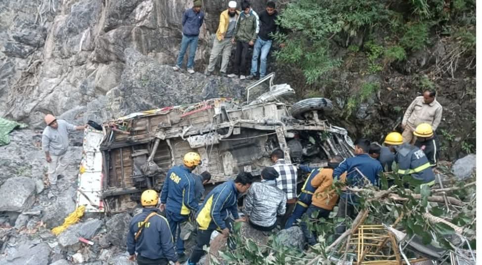 देहरादून राज्य में सड़क हादसे भी कम होने का नाम नहीं ले रहे हैं। कभी तराई तो कभी पहाड़ों से हादसों की दुखद खबर सामने आ रही है। ताजा मामला जनपद देहरादून, जूडो डैम के पास पिकअप वाहन हुआ दुर्घटनाग्रस्त, SDRF ने किया एक घायल को रेस्क्यू, दूसरे का शव बरामद। आज मंगलवार को पुलिस चौकी डाकपत्थर, जनपद देहरादून से SDRF को सूचना प्राप्त हुई कि जूडो डैम के समीप एक वाहन गहरी खाई में दुर्घटनाग्रस्त हो गया है। सूचना मिलते ही SDRF पोस्ट डाकपत्थर से अपर उपनिरीक्षक सुरेश तोमर के नेतृत्व में रेस्क्यू टीम तत्काल घटनास्थल के लिए रवाना हुई। मौके पर पहुँचकर पाया गया कि दुर्घटनाग्रस्त वाहन पिकअप (UK07 CA 1049) लगभग 220 मीटर गहरी खाई में गिरा था, जिसमें दो व्यक्ति सवार थे। SDRF टीम ने अत्यंत दुर्गम भू-भाग एवं चुनौतीपूर्ण परिस्थितियों में आवश्यक उपकरणों की सहायता से रेस्क्यू ऑपरेशन संचालित किया। रेस्क्यू के दौरान— घायल व्यक्ति हुकुम को सुरक्षित निकालकर एंबुलेंस के माध्यम से अस्पताल भिजवाया गया। मृतक व्यक्ति राशिद अली, निवासी विकासनगर, के शव को बरामद कर आवश्यक कार्यवाही हेतु जिला पुलिस के सुपुर्द किया गया।