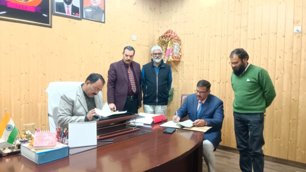 अल्मोड़ा सोबन सिंह जीना विश्वविद्यालय एवं नन्ही परी सीमांत इंजीनियरिंग कॉलेज, पिथौरागढ़ के बीच एमओयू हस्ताक्षर हो गए हैं। दोनों संस्थाओं के बीच हुए इस एमओयू के होने से दोनों संस्थानों के बीच शोध कार्य किये जायेंगे। इसके साथ फैकल्टी और जन संसाधन का आदान-प्रदान होगा। शोधार्थी, अकादेमिक सदस्य एवं विद्यार्थियों को प्रयोगशाला की सुविधा, प्रशिक्षण कार्यक्रम, कॉन्फ्रेंस, सेमिनार के आयोजन,शोध पत्रों के प्रकाशन, शोध निर्देशन, फील्ड प्रोजेक्ट एवं इंटर्नशिप की सुविधा मिलेगी। शोध एवं शिक्षा के आदान-प्रदान किये जायेंगे। इंजीनियरिंग, कैमिकल इंजीनियरिंग, क्लाउड कंप्यूटिंग, एनवायर्नमेंटल इंजीनियरिंग,भारी धातुओं के जैवअवशोषण और अधिशोषण से संबंधित अनुसंधान गतिविधियाँ। जल रसायन विज्ञान और जल-भू रसायन विज्ञान, पर्यावरण अभियांत्रिकी, सौर भौतिकी और तारों का गायन, विभेदक ज्यामिति, उप मैनिफोल्ड और हाइपर सरफेस, फजी लॉजिक, कृत्रिम बुद्धिमत्ता, मशीन लर्निंग और उन्नत आईओटी आधारित अनुसंधान, क्लाउड कंप्यूटिंग और डेटा विश्लेषण, बुनियादी विज्ञान और इंजीनियरिंग से संबंधित अन्य विषय में मिलकर कार्य होंगे। एमओयू को लेकर विश्वविद्यालय के कुलपति प्रोफेसर सतपाल सिंह बिष्ट ने प्रशंसा व्यक्त की। उन्होंने कहा कि दोनों ही संस्थानों के बीच अब सेमिनार, संगोष्ठी और व्याख्यानों का आयोजन होगा। अकादेमिक सदस्य, विद्यार्थी और शोधार्थी और उनमें भागीदारी कर सकेंगे। भविष्य में शोध एवं अकादेमिक गतिविधियों का संचालन किया जाएगा। इस एमओयू में विश्वविद्यालय की ओर से कुलपति प्रो सतपाल सिंह बिष्ट और नन्ही परी सीमांत इंजीनियरिंग कॉलेज, पिथौरागढ़ की ओर से निदेशक प्रोफेसर अजित सिंह ने हस्ताक्षर किए। साथ ही इस एमओयू में विश्वविद्यालय के कुलसचिव डॉ देवेंद्र सिंह बिष्ट और सीमांत इंजीनियरिंग कॉलेज के कुलसचिव लेफ्टिनेंट (डॉ) हेमंत कुमार साक्षी रहे। इस अवसर पर IQAC के निदेशक प्रो सुशील कुमार जोशी, मीडिया प्रभारी डॉ ललित जोशी, वैयक्तिक सहायक विपिन जोशी एवं गोविंद मेर उपस्थित रहे।