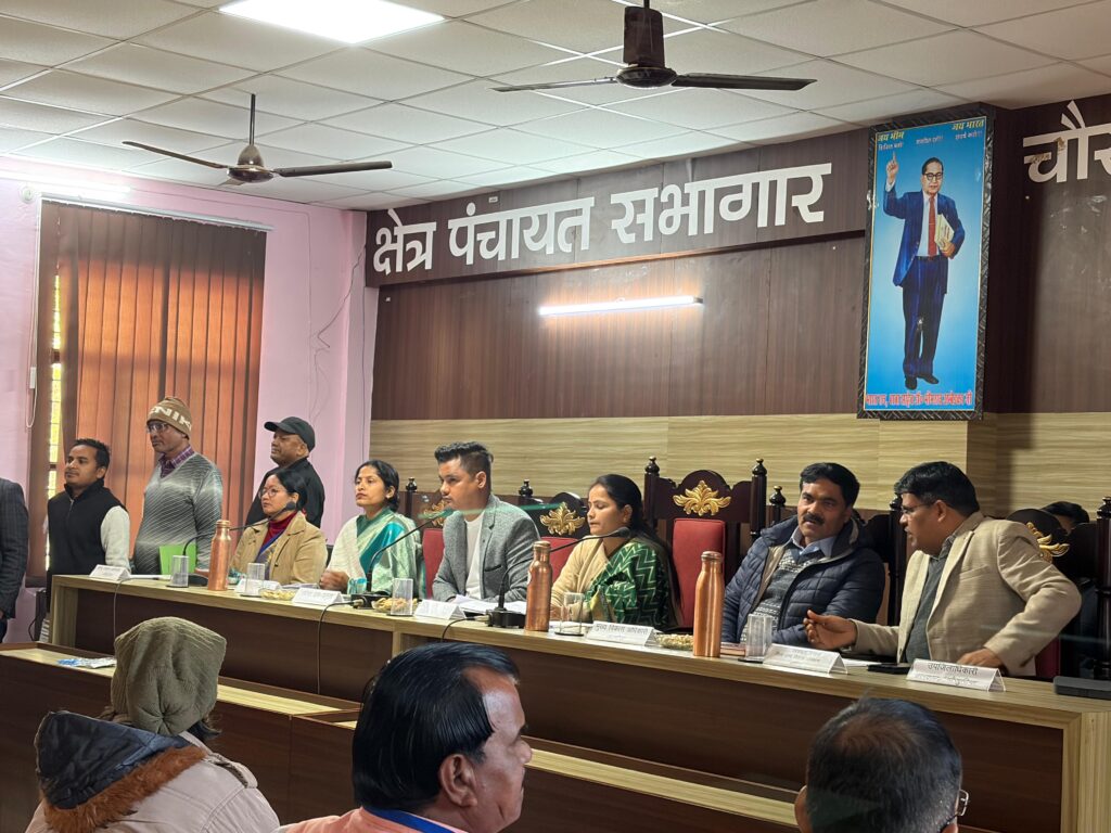 बैठक में ब्लॉक प्रमुख चेतना नेगी, ज्येष्ठ प्रमुख जितेंद्र बंगारी, कनिष्ठ प्रमुख सुप्रिया, परियोजना निदेशक के.एन. तिवारी, जिला पंचायतराज अधिकारी राजेंद्र गुंज्याल, तहसीलदार तितिक्षा जोशी सहित विभिन्न विभागों के अधिकारी एवं जनप्रतिनिधि उपस्थित रहे।
